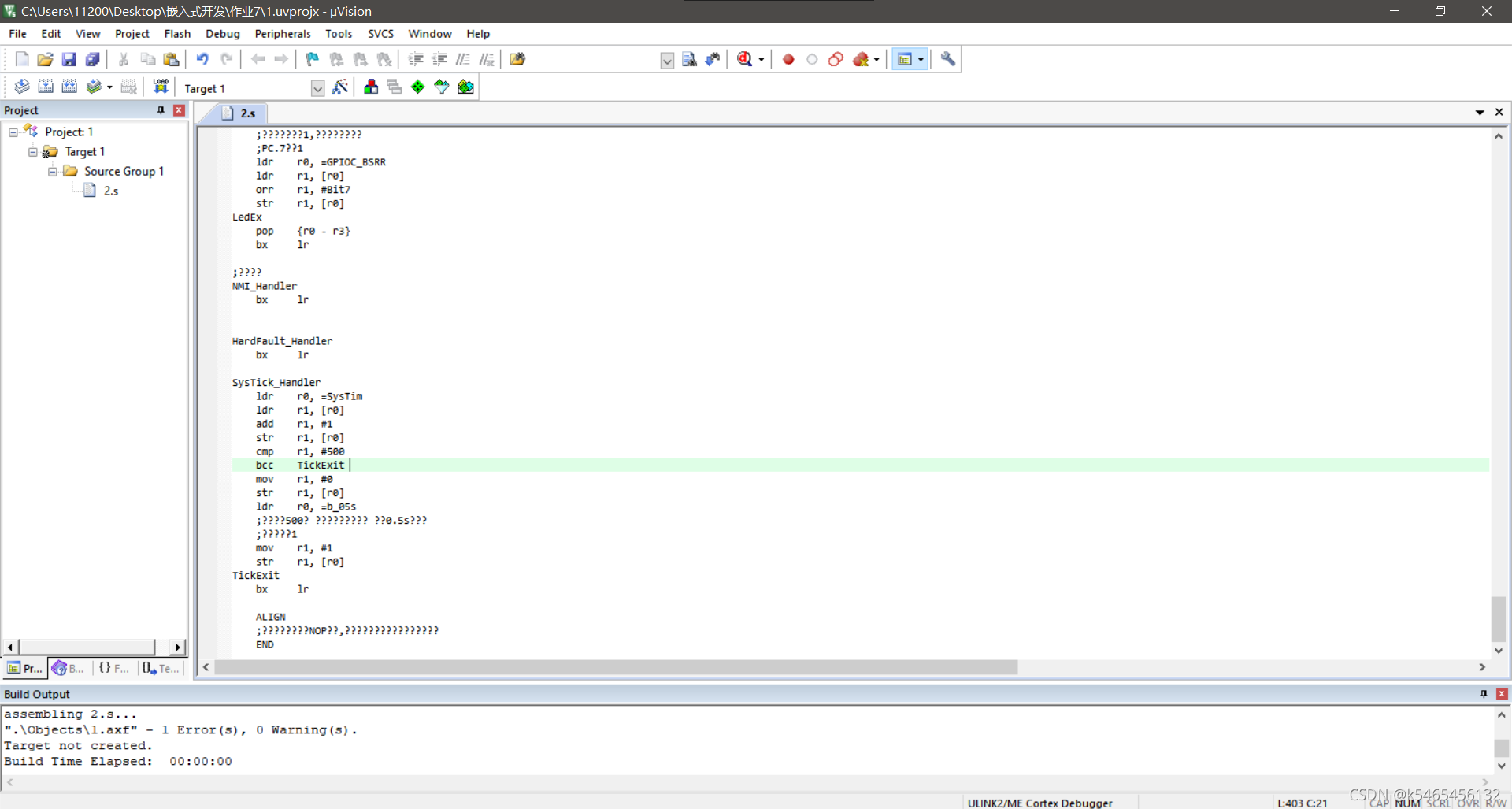 之后我们往工程内添加arm汇编文件,之后我们把下面的代码输入到新建的arm文件当中: