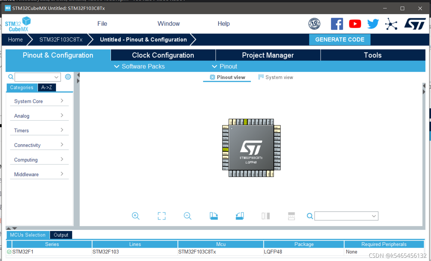 (一)选择MCU和封装 这里我选的是STM32F103C8Tx,在搜索处选择STM32F103C8Tx