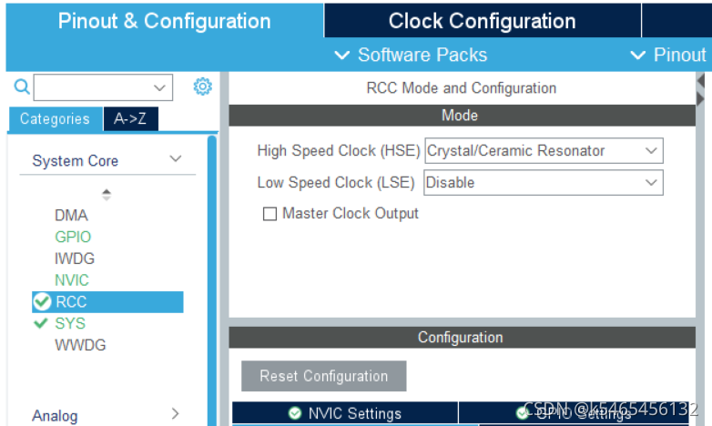 然后选择RCC下的high speed clock改成Crystal/Ceramic Resonator?