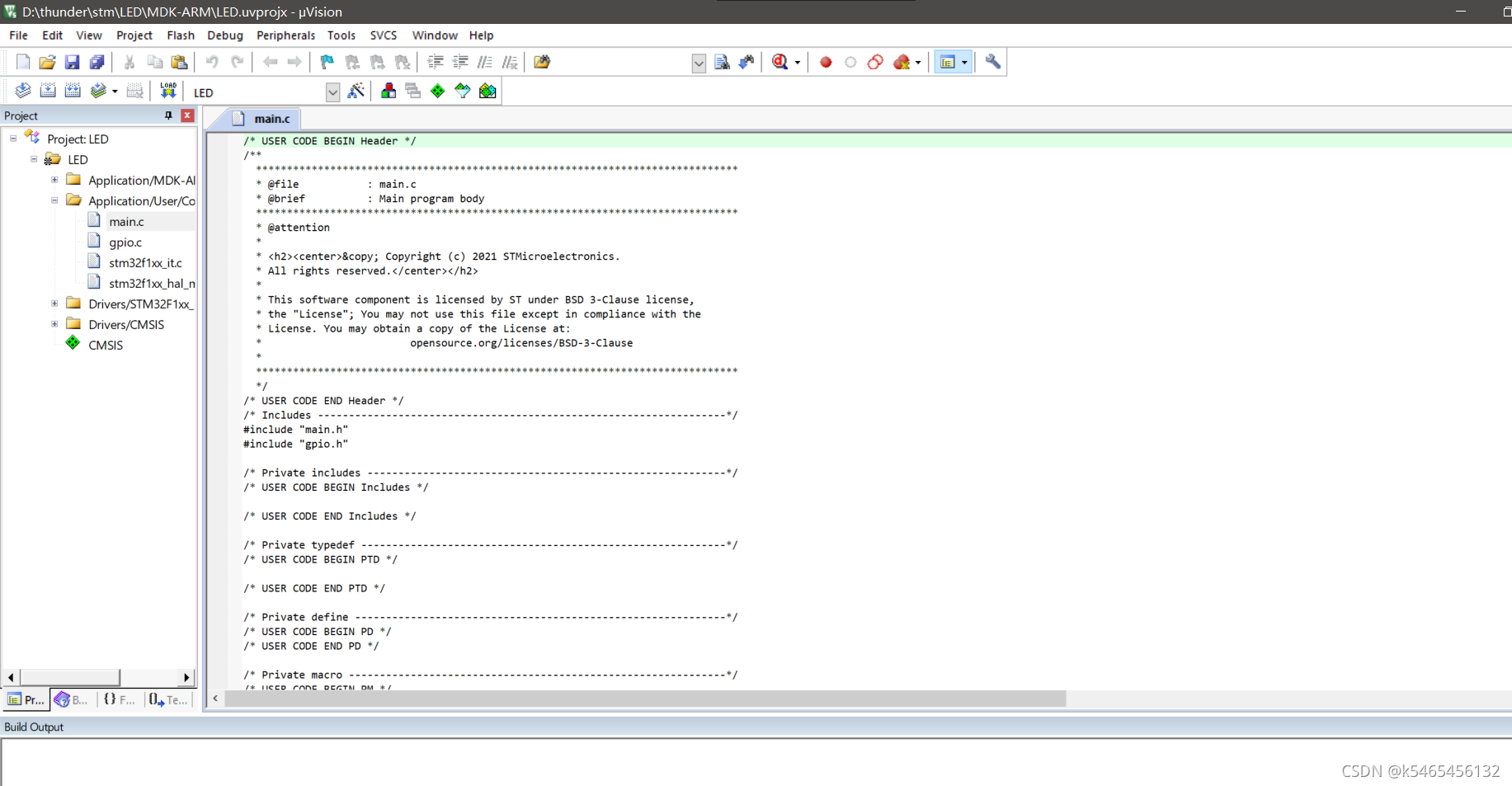 点击Generate Code?之后会有提示,选择open project 选择Keil5打开 打开Application/User/Core中的main文件