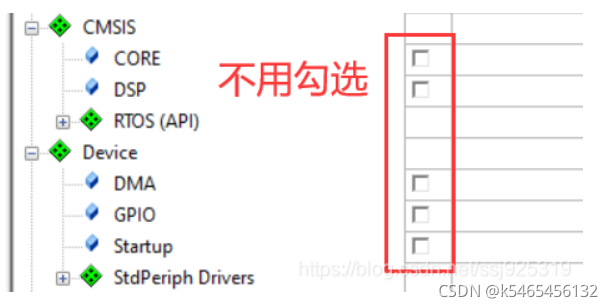 首先创建新的工程,然后我们在CMSIS和Device处不用勾选