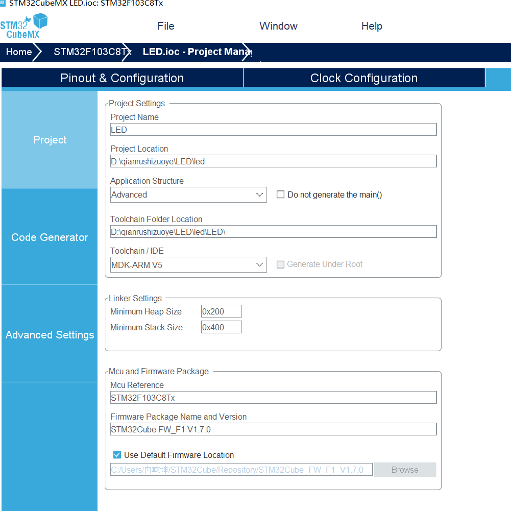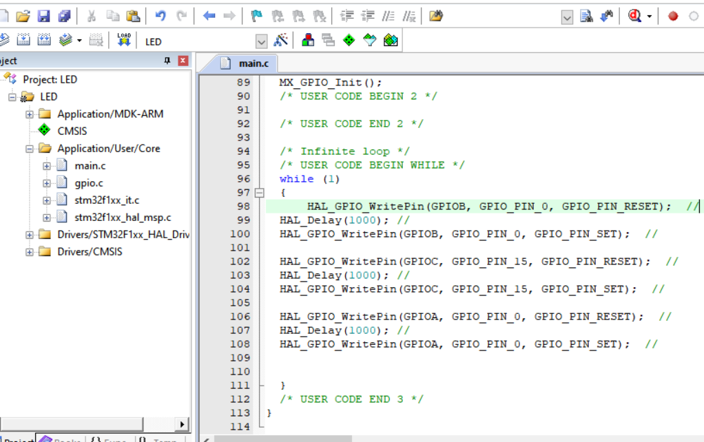 点击Generate Code 打开项目中的.c文件,在while循环中加入如下
