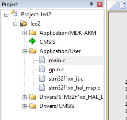 在生成的项目文件夹中打开MDK-ARM,可以看到keil形式的工程,打开这个工程,就能看到我们配置的那些工程模板的代码了: