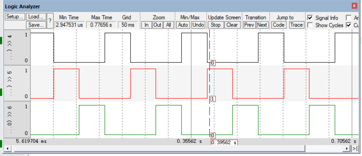 然后我们编译运行程序,并进入调试页面。在调试界面点击下图按钮选择逻辑分析仪。