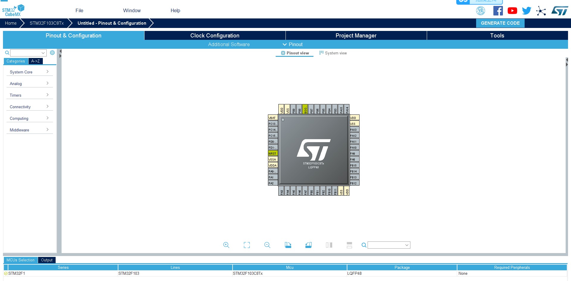STM32CubeMX 是 ST 意法半导体近几年来大力推荐的STM32 芯片图形化配置工具,目的就是为了方便开发者, 允许用户使用图形化向导生成C 初始化代码,可以大大减轻开发工作,时间和费用,提高开发效率。STM32CubeMX几乎覆盖了STM32 全系列芯片。?