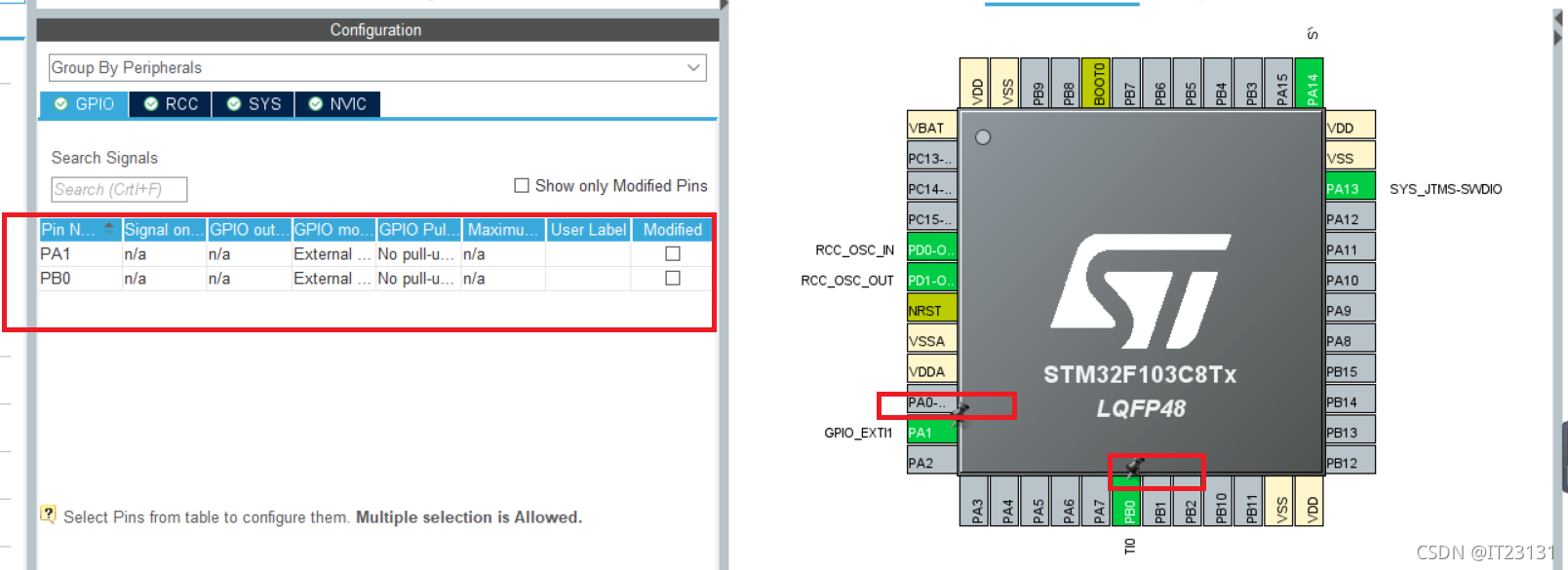 ?将PB0选为外部中断触发器,PA1是控制led灯的,和将它选择为GPIO_output就行了