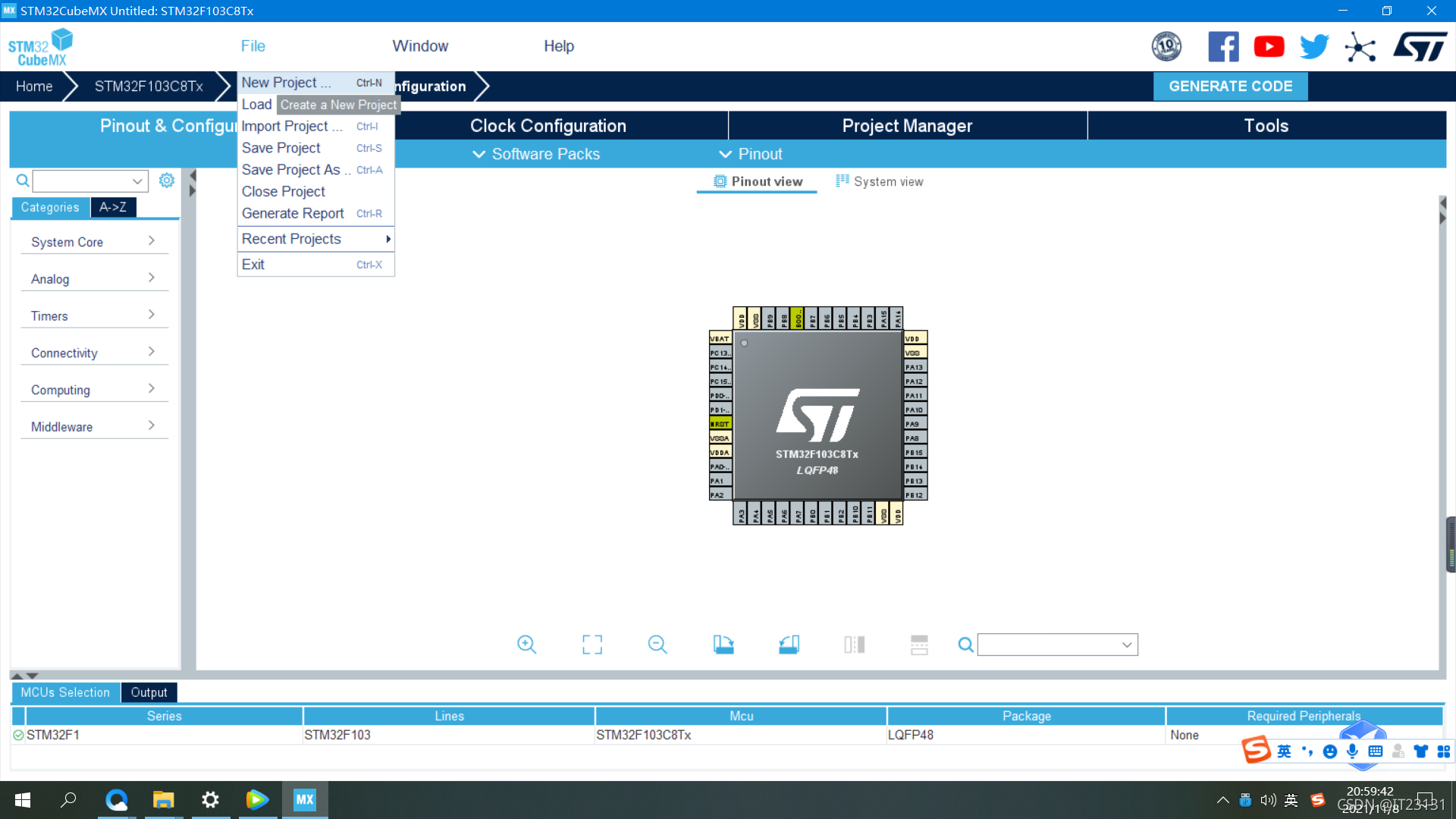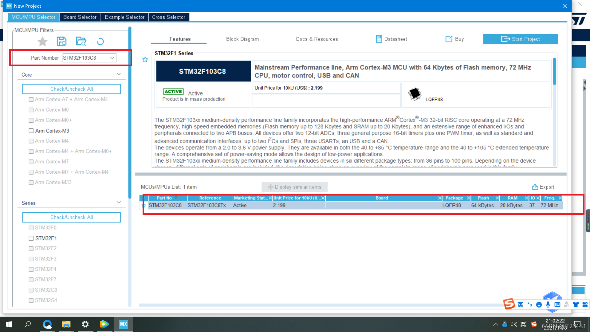 ?2.搜索F103C8,点击右侧的选项,创建新的项目
