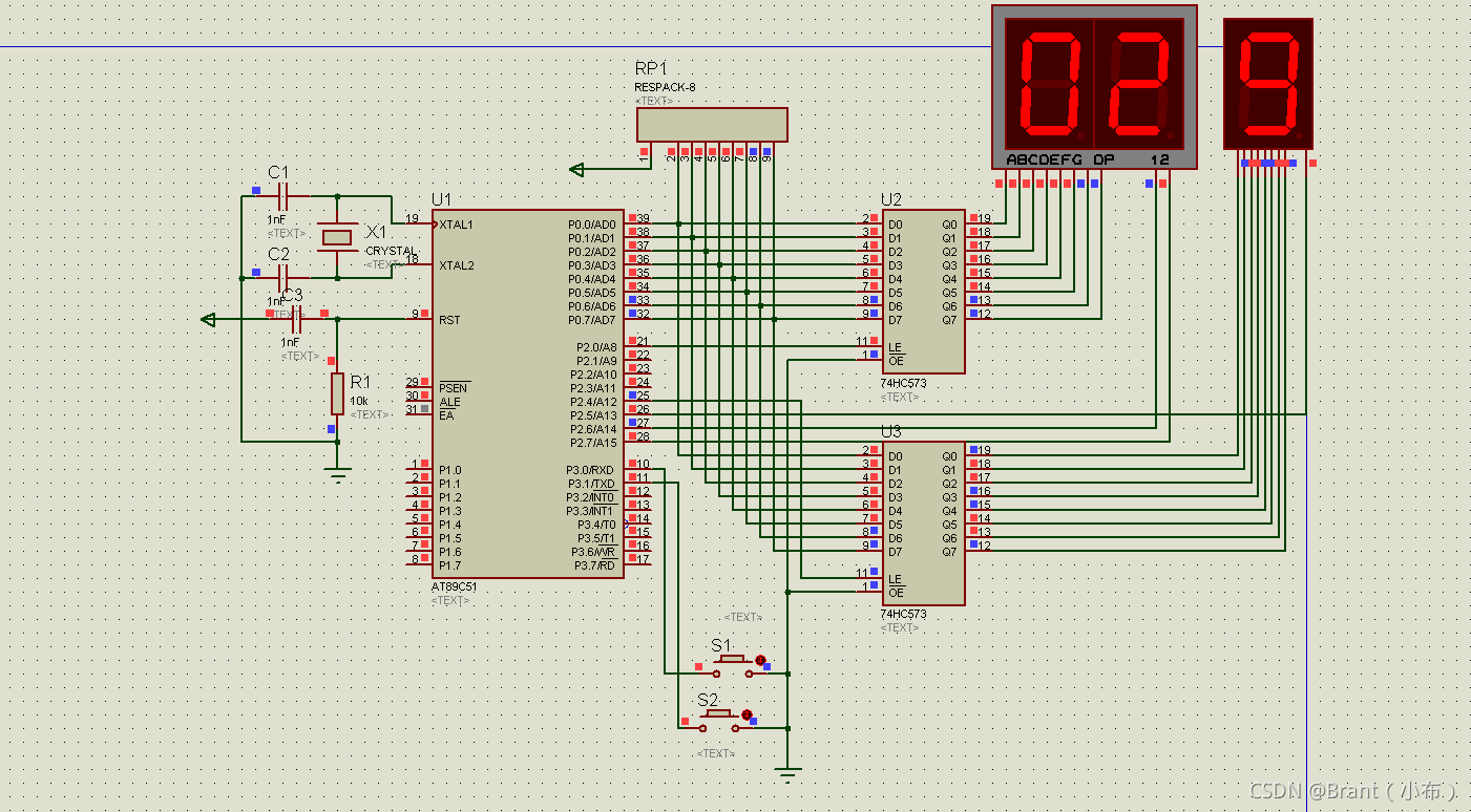 sbit le1=P2^0;//用来控制第一个锁存器