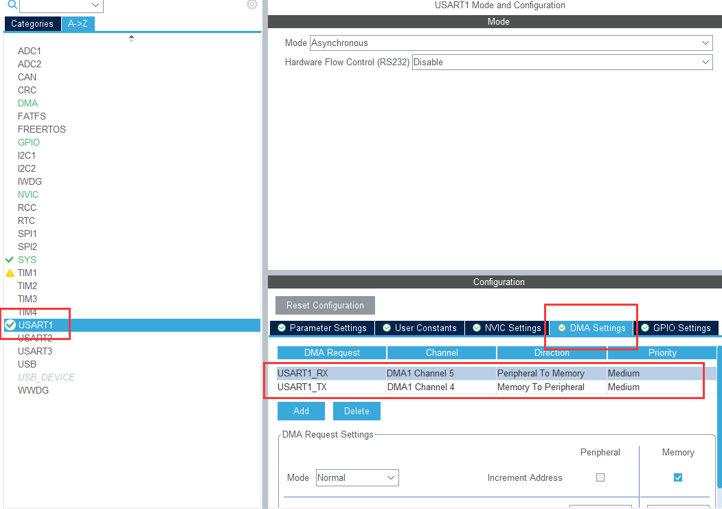 如果不开启中断,程序只能发送一次数据,程序无法判断DMA传输是否完成。