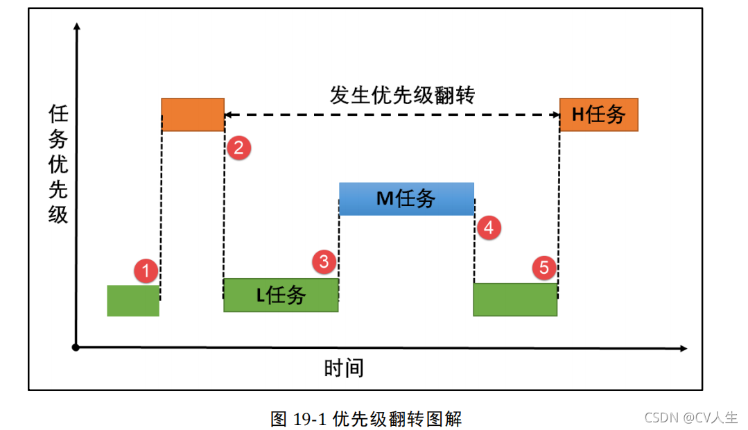 2、优先级翻转:我们知道任务的优先级在创建的时候就已经是设置好的,高优先级的任务可以打断低优先级的任务,抢占 CPU 的使用权。但是在很多场合中,某些资源只有一个,当低优先级任务正在占用该资源的时候,即便高优先级任务也只能乖乖的等待低优先级任务使用完该资源后释放资源。这里高优先级任务无法运行而低优先级任务可以运行的现象称为“优先级翻转”。