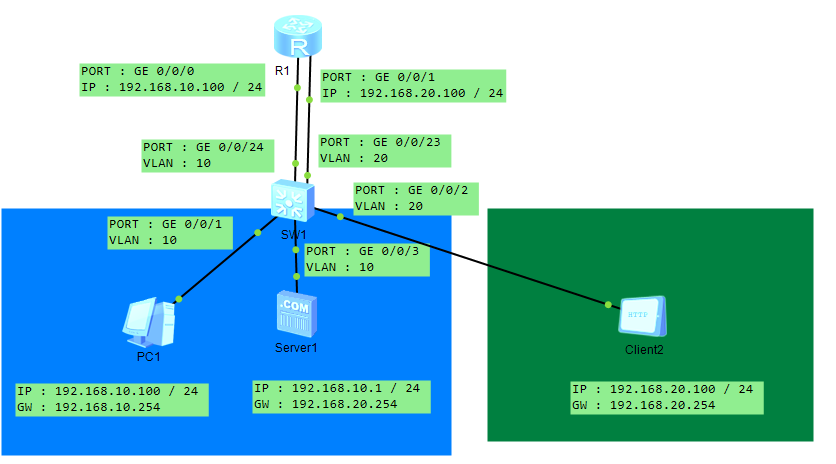 [R1-GigabitEthernet0/0/0.1]ip addr 192.168.10.254 24