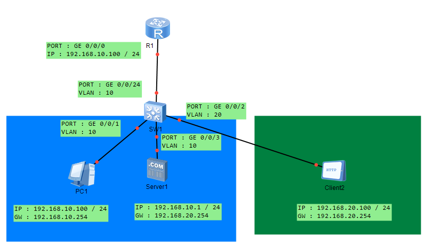 [sw1-GigabitEthernet0/0/24]p t a v 10 20