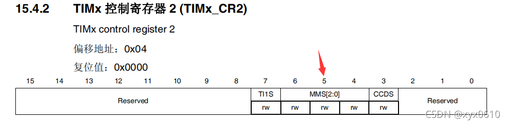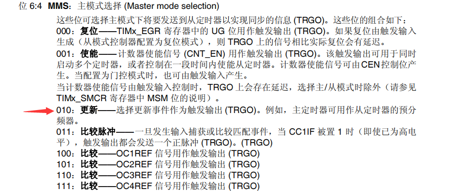 TIM3->CR2 |= 0x0020; //选择定时器更新事件作为触发输出