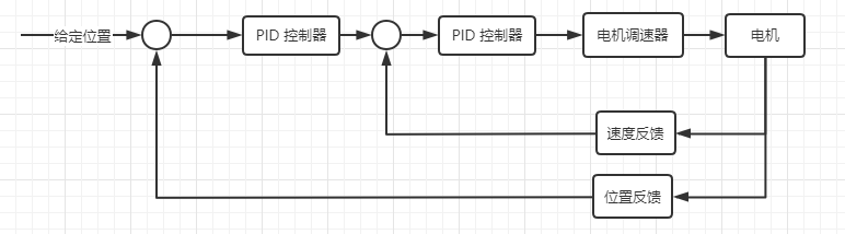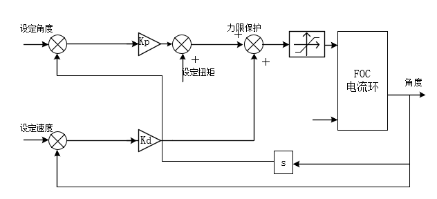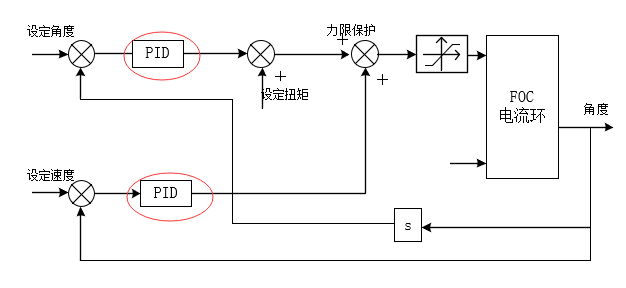 ????该电机只有底层的电流环,速度环和位置环均不存在,但其实和 Tmotor 电机的控制类似,我们同样可以在其上编写位置环和速度环控制。  ????添加了速度环和位置环的控制框图如下,和上面的其实并没有区别。