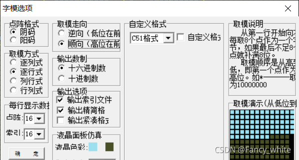 ?需要将设置点阵的取模走向改为顺向,方式改为逐行?