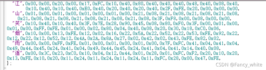 用点阵字取模工具将对应字的字模取出来添加到oledfont中去