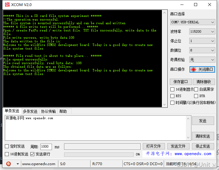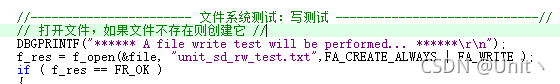 f_res = f_open(&file, "unit_sd_rw_test.txt",FA_CREATE_ALWAYS | FA_WRITE );