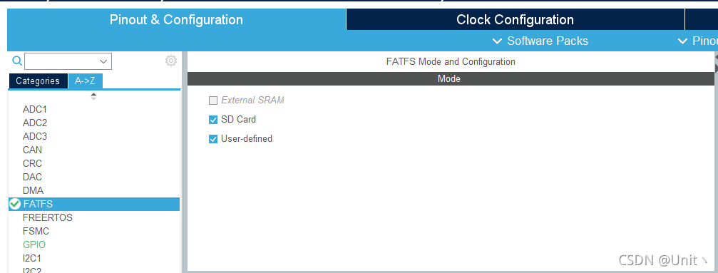 然后配置FATFS,User-defined我建议是选上,对初学者的一次成功概率要更高一点。