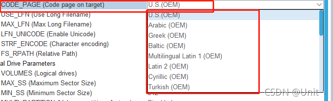 ????????从CODE_PAGE开始,按照顺序,设置英文、使能栈的缓存,最大的LFN为64(默认是255,如果跟我一样设置为64,那么SD里面的文件名超过64字的长度的话,可能会出现f_open失败的情况,请按照个人情况设置)