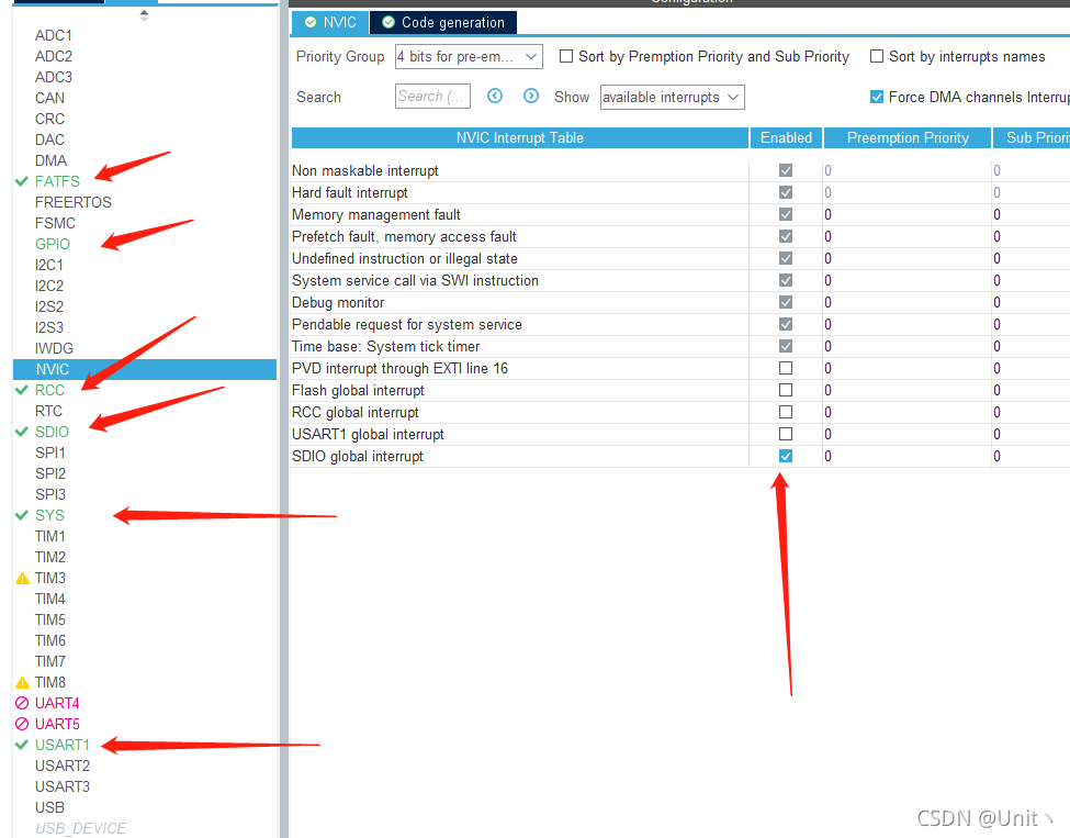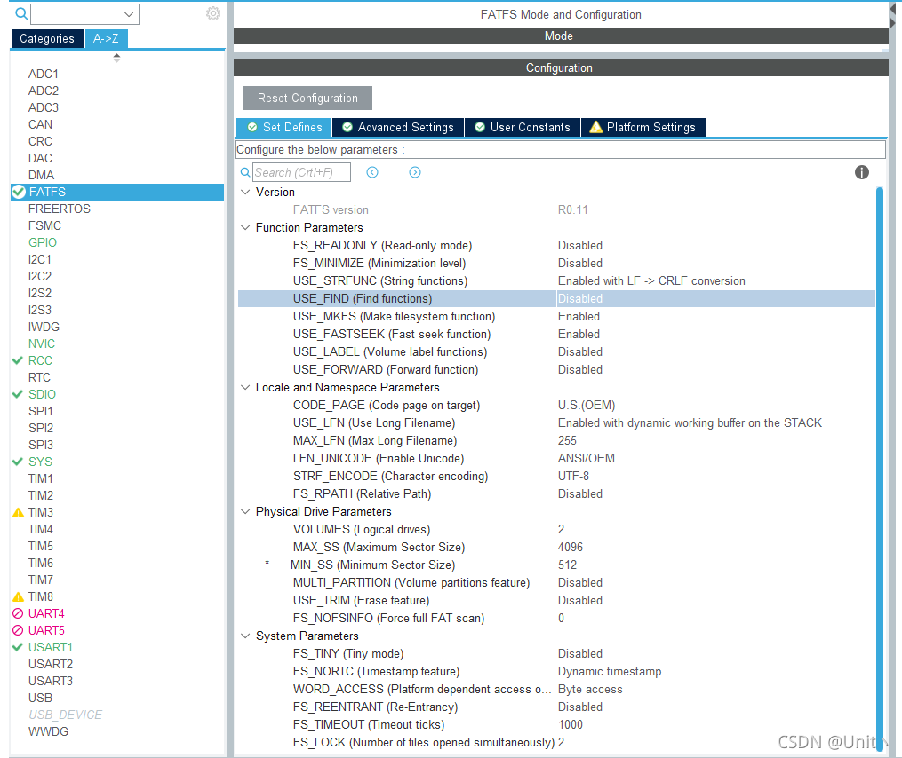 在上面的基础上,只需要更改FATFS部分的配置即可。