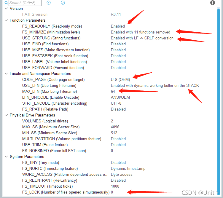 ????????要使能第二行的FS_READONLY的话,要让最后一行的FS_LOCK设置成0才能看到选项(这个是设置成只读的配置,其他的写啥的f_write,基本都不能用,为了省空间)