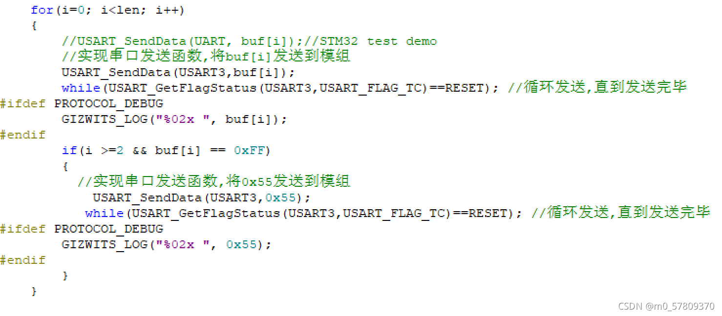 //USART_SendData(UART, buf[i]);//STM32 test demo