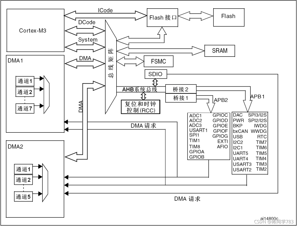 stm32的内核和外设之间的关系:(示意图)
