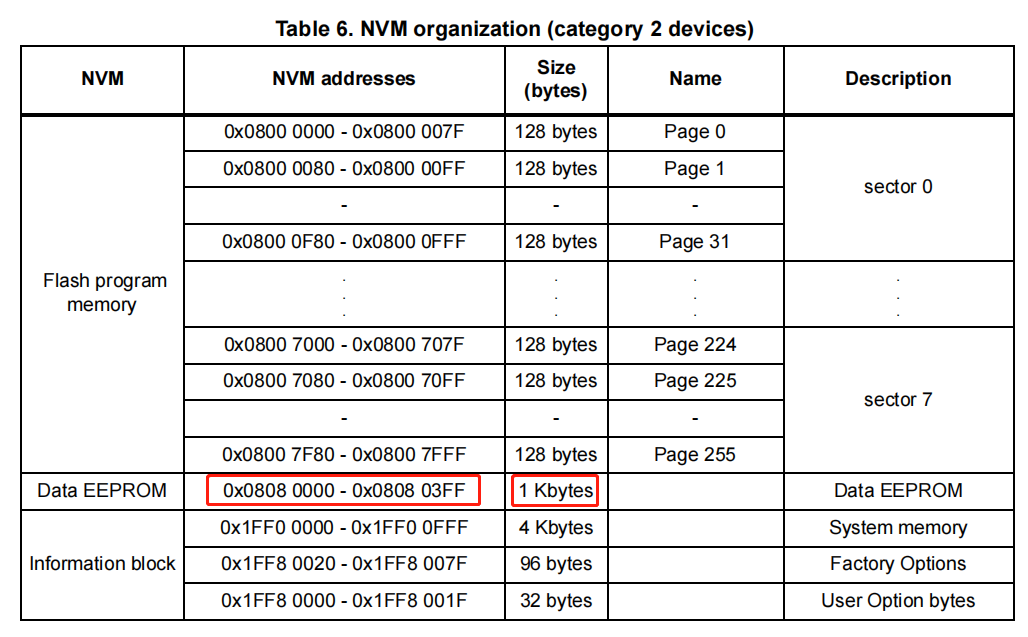 | 先找到芯片的Reference manual手册,找到EEPROM的内存地址