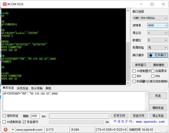 ①连接esp32模块到PC端,打开串口调试助手(XCOM)(设置好波特率 换行发送),发送AT指令给模块,设置好工作模式(STA),连接到服务器