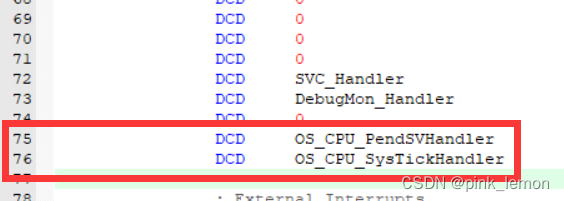 ?在以下位置处将PendSV_Handler和SysTick_Handler改为OS_CPU_PendSVHandler和OS_CPU_SysTickHandler