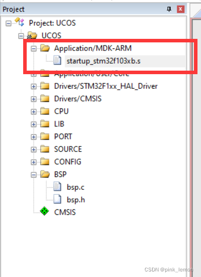 在以下位置处将PendSV_Handler和SysTick_Handler改为OS_CPU_PendSVHandler和OS_CPU_SysTickHandler