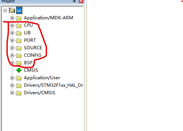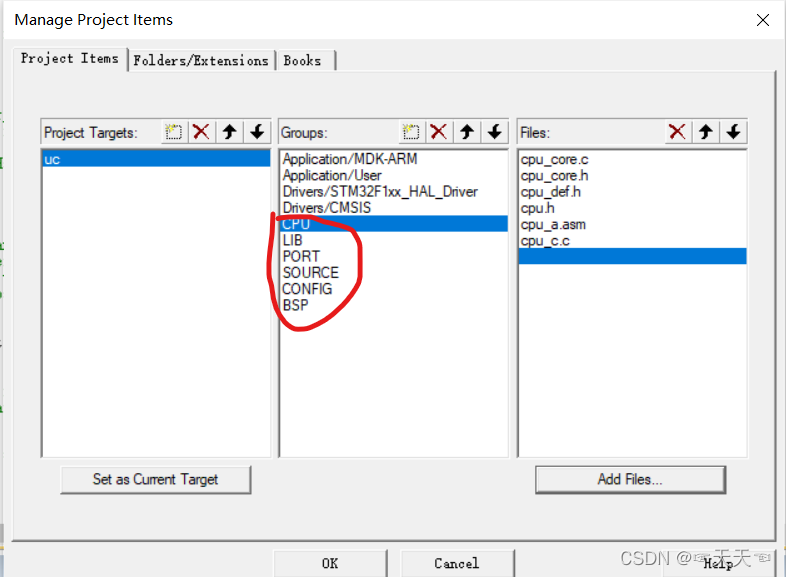 回到Keil打开的HAL工程,将uCOS文件添加到项目: