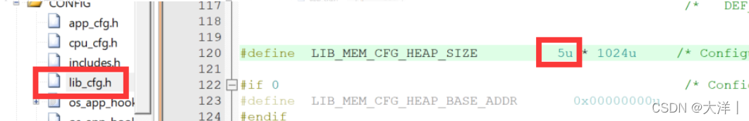 lib_cfg.h里修改堆空间的宏定义,它原本是27K,但这块板子RAM一共才20k,修改为5k