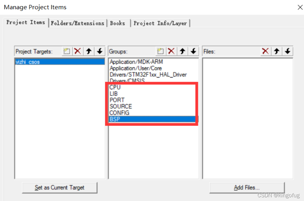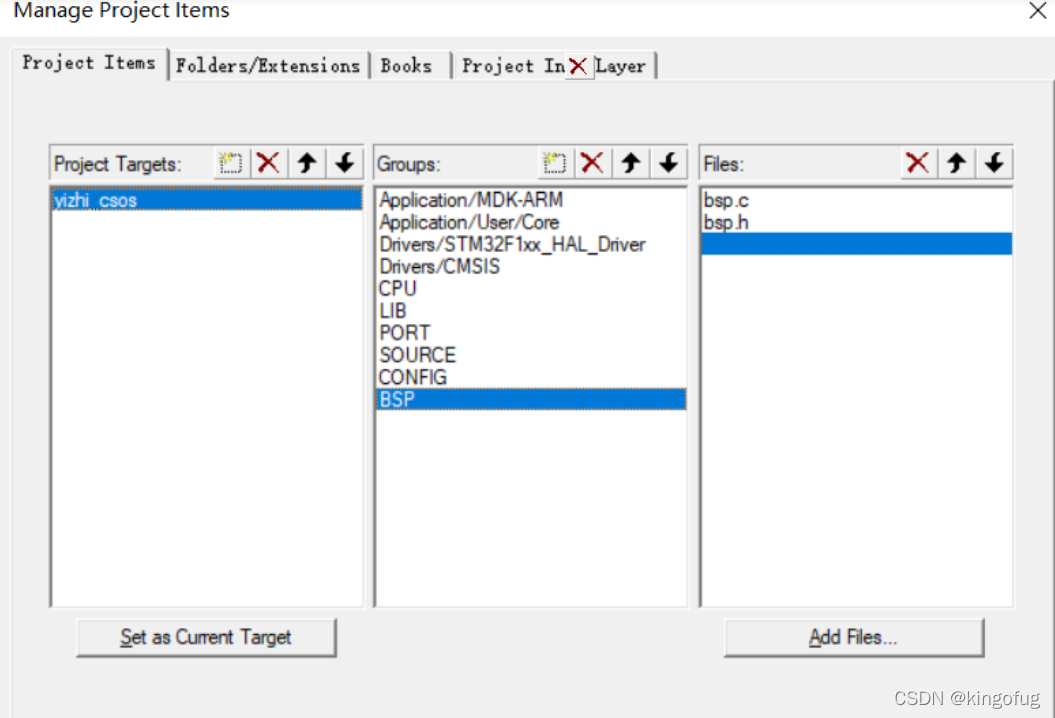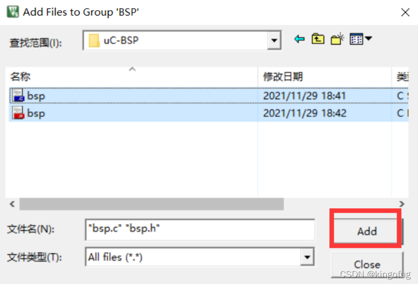 ?并在BSP,file下添加刚刚创建的空白文件bsp.c和bsp.h