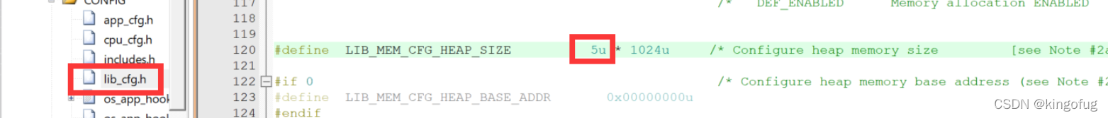 lib_cfg.h里修改堆空间的宏定义,它原本是27K,但这块板子RAM一共才20k,修改为5k