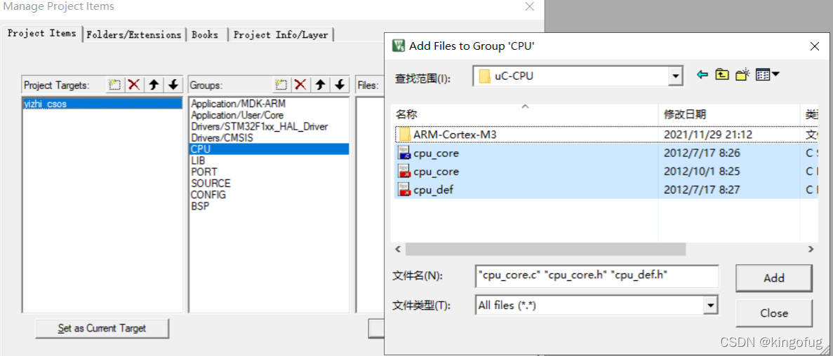 CPU下添加file,6个,其中包括uC-CPU下的3个和realview下的3个