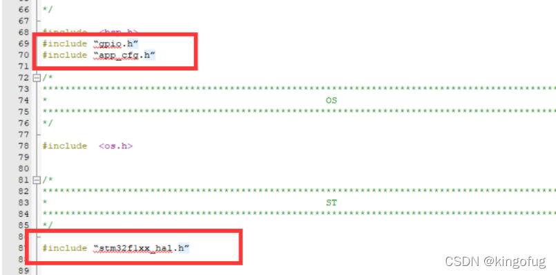 修改CONFIG/includes.h? 在#include<bsp.h>后加上 ? ? ? ? ? ? ? ? ? ? #include “gpio.h” ? ? ? ? ? ? ? ? ? ? #include “app_cfg.h”