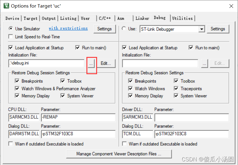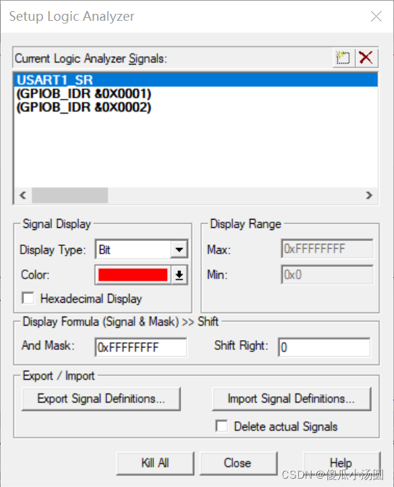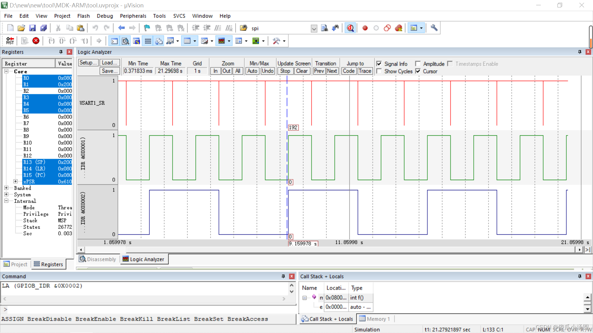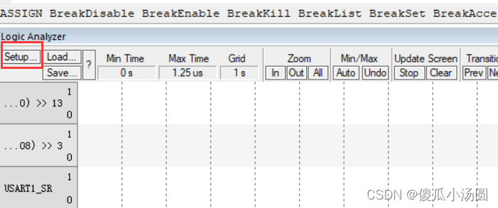 使用Keil仿真逻辑仪观察引脚电平变化_机智的橙子的博客-CSDN博客文章目录一.使用Keil仿真逻辑仪观察引脚电平变化二.使用SaleaeLogic16进行逻辑分析一.使用Keil仿真逻辑仪观察引脚电平变化打开Keil工程(uC/OS移植工程),点击以下图标选择逻辑分析仪点击Setup…添加引脚和串口Display Type均设置为Bit点击图标,开始运行观察到PC13引脚电平变化周期为2s,PA3引脚电平变化周期为6s,串口USART1周期为2s。同时查看项目代码PC13:PA3:USART1:时间设置和上面逻辑分析仪一致。注 https://blog.csdn.net/qq_45659777/article/details/121650875?