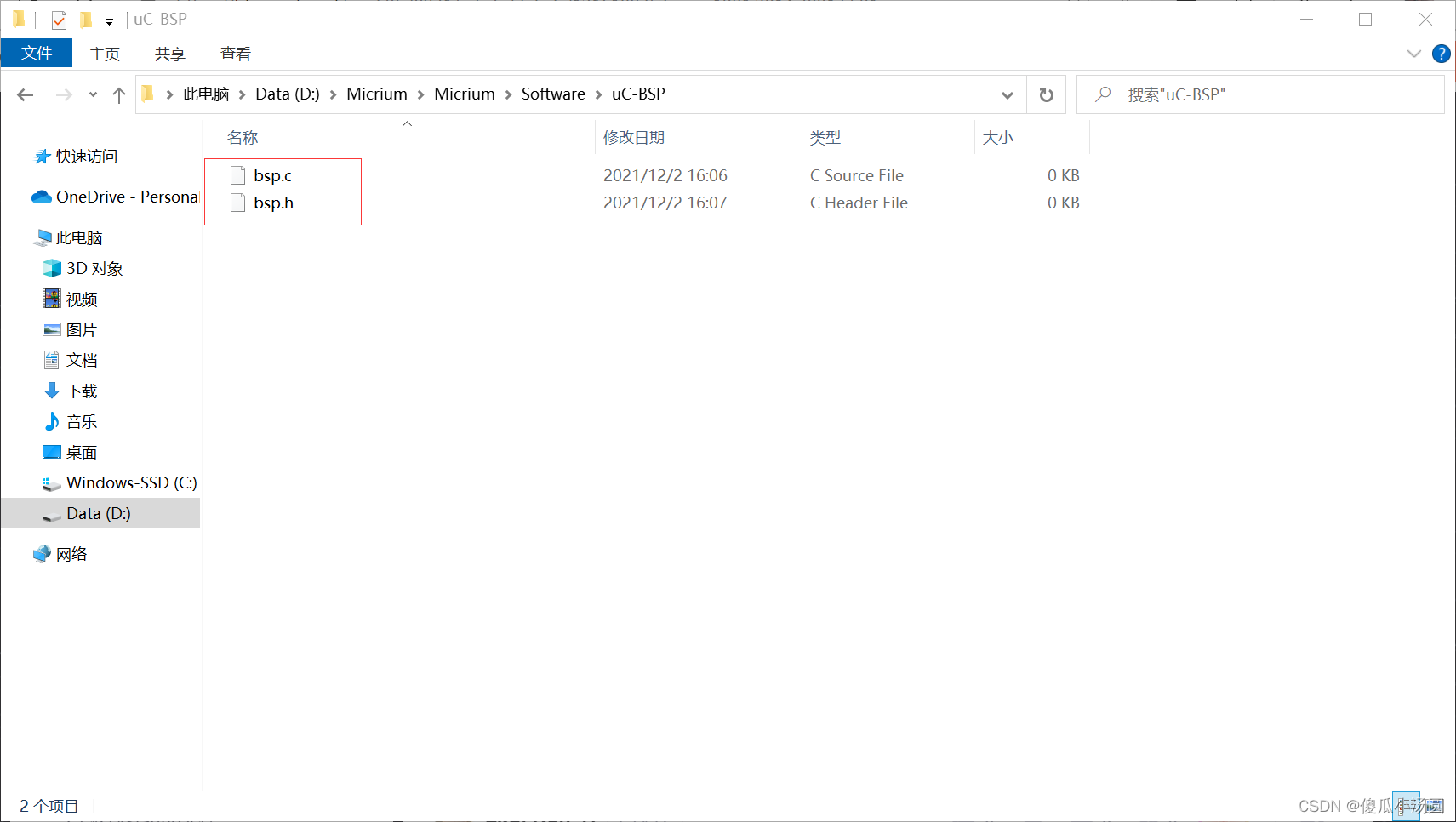 ?创建bsp.c和bsp.h文件,代码之后再添加,创建在uC-BSP中