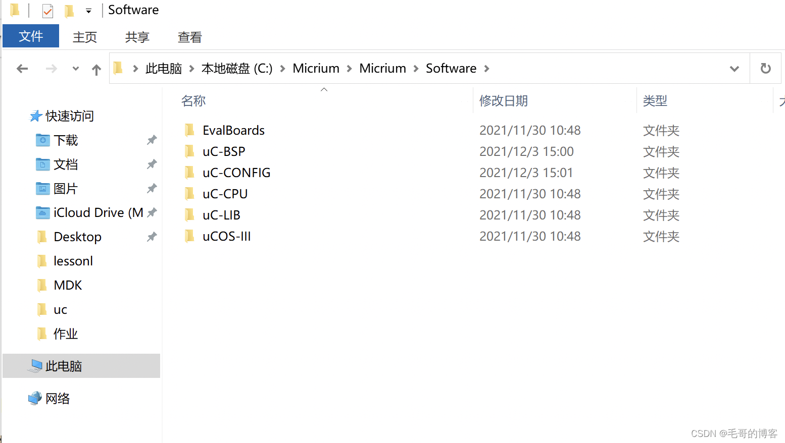网盘下载,打开目录如下(文件夹uC-BSP和uC-CONFIG是自己新建的两个文件夹)