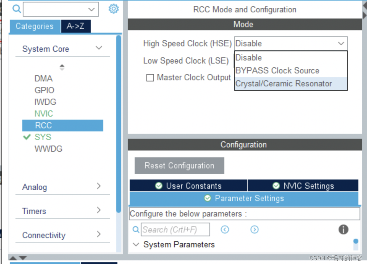 设置PC13为GPIO_Output用于点亮LED灯