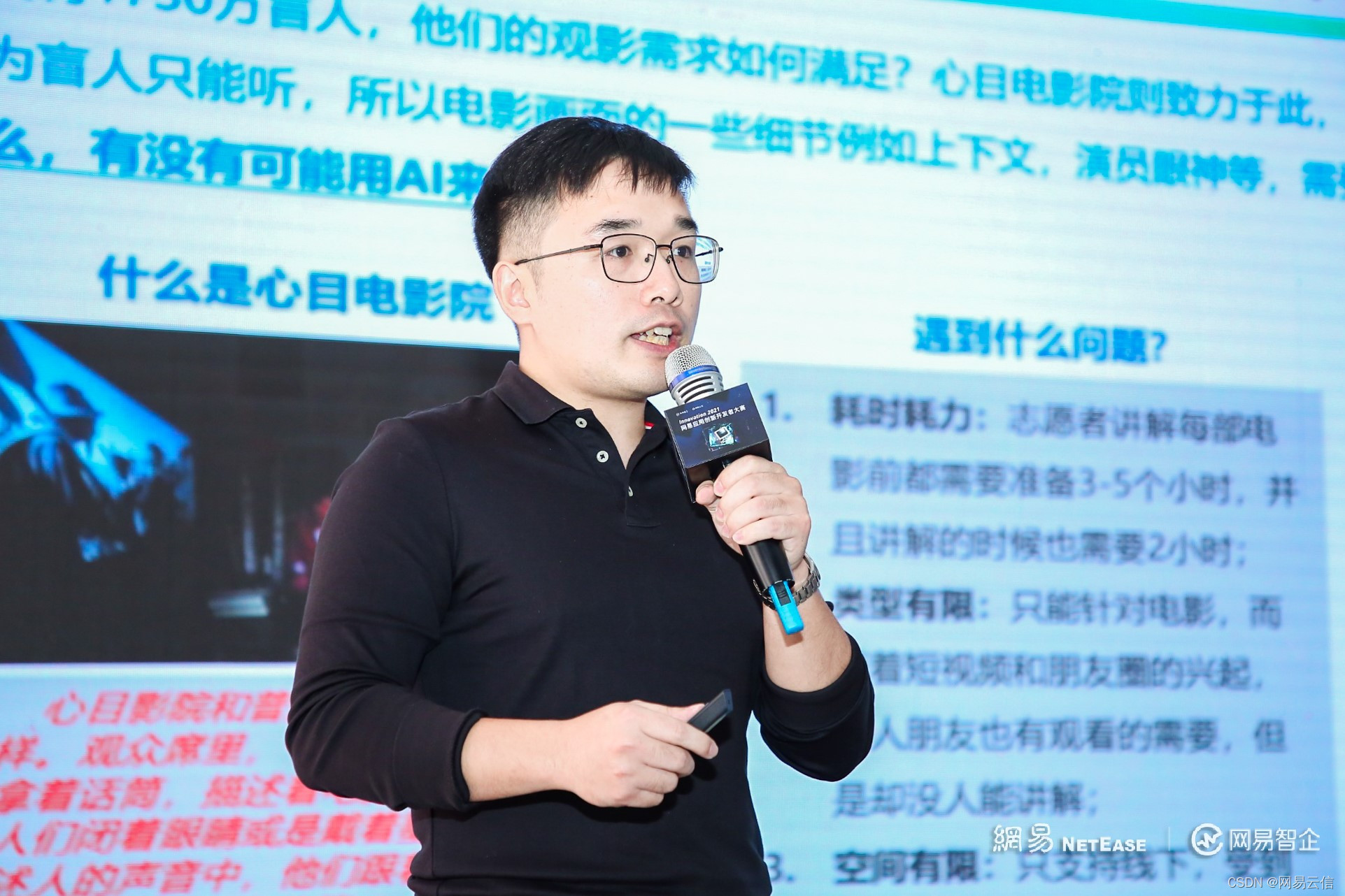 作为本次大赛的亚军,广东移动的粤来粤好团队开发的“AI赋能心目电影院”也让人眼前一亮。这是一款有温度的应用,中国有1730万盲人,这类人群也具有基本的观影需求,渴望多彩的视听体验,而盲人只能通过听觉感知世界,所以电影画面的细节,如:上下文、演员眼神等,都需要专人讲解。如何满足这类需求?本着“科技向善”的理念,心目电影院致力于此,通过AI技术实现自动从各类电影、短视频中生成语音讲解,并基于网易云信音视频通信能力打造线上流畅的交互体验,覆盖更多盲人用户。?