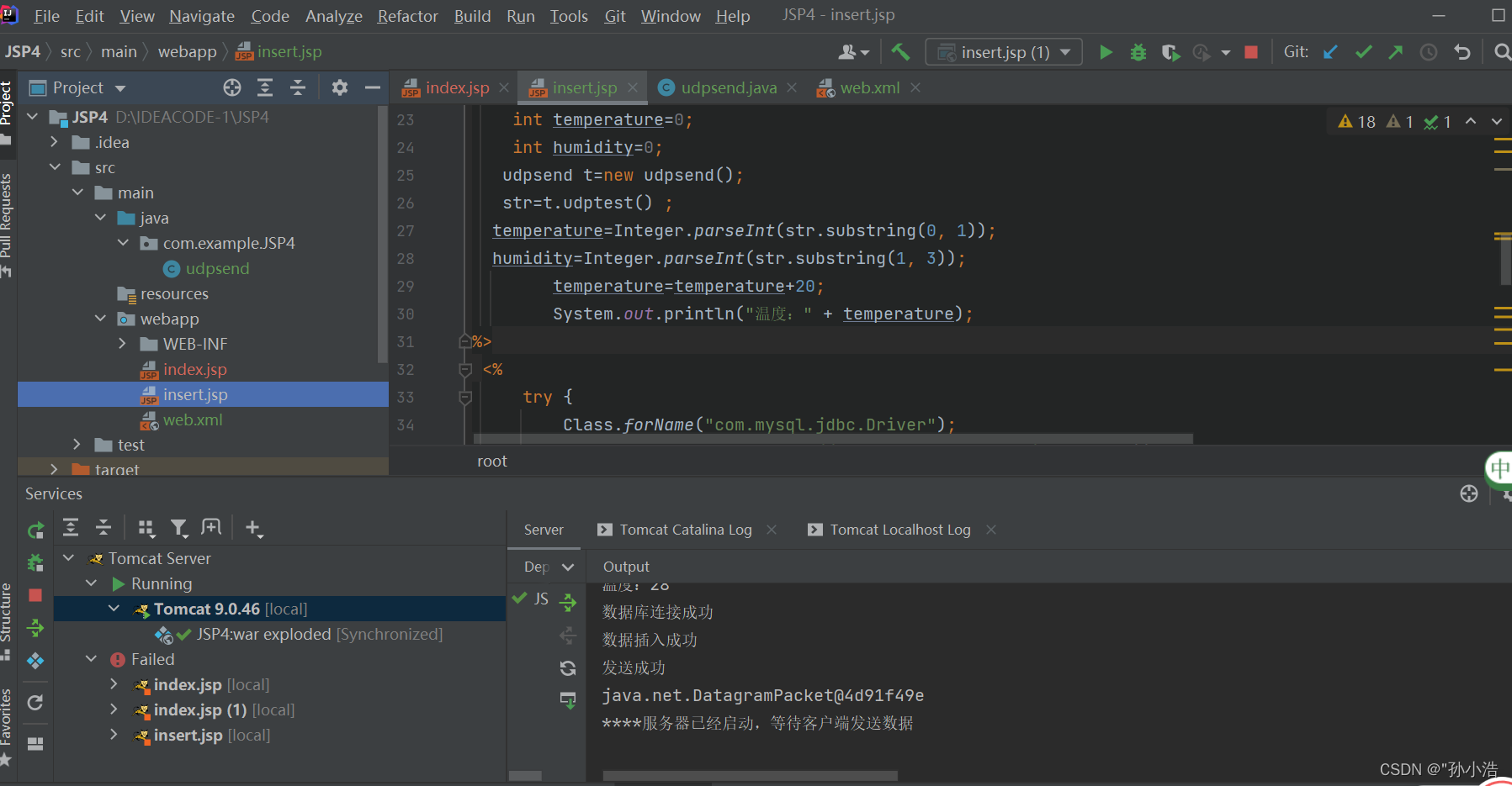 实现思路:1.单片机将传感器数据读出,通过wlan网络使用udp协议发送至服务器端