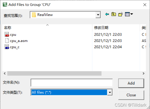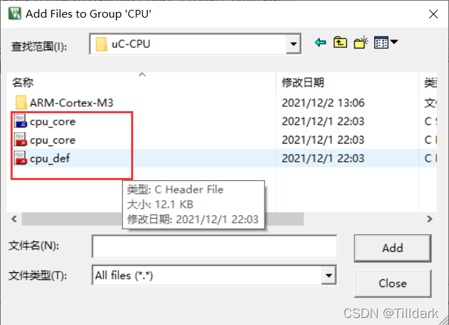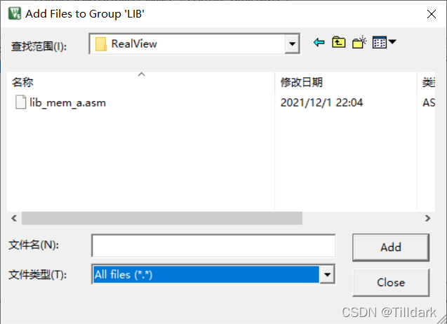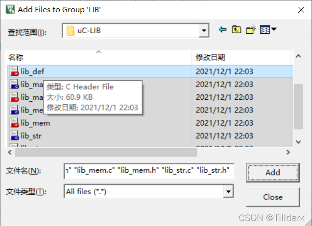 ?点击LIB–>Add Files,选中以下文件,进行添加