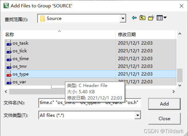 ?点击SOURCE–>Add Files,选中以下文件,进行添加