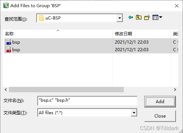 ?点击BSP–>Add Files,选中以下文件,进行添加