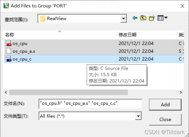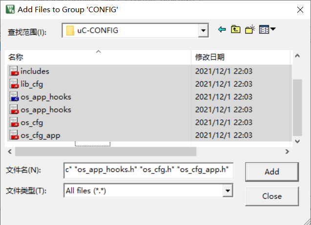 ?点击CONFIG–>Add Files,选中以下文件,进行添加
