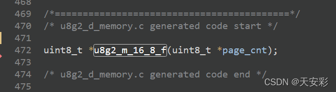5.注意到上面截图里那个函数只用到了"u8g2_m_16_8_f"这个函数来生成buf空间,因此我们去"u8g2_d_memory.c"里面,把除了"u8g2_m_16_8_f"之外的函数都注释或者删除掉,不这样做的话可能会消耗大量空间。文件最后如下: