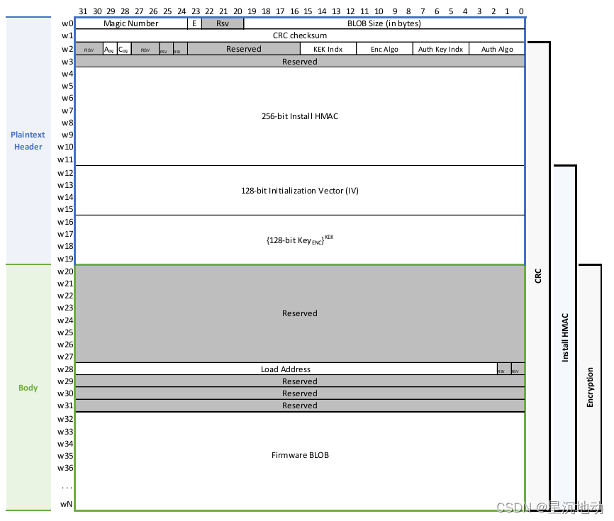 3.制作升级文件 ? ? ? ? 编译器生成的binary文件是不能直接用于升级的,SBL只能识别包含特定文件头的文件。 这个文件的格式如文档中描述,下图是NonSecure Main格式: