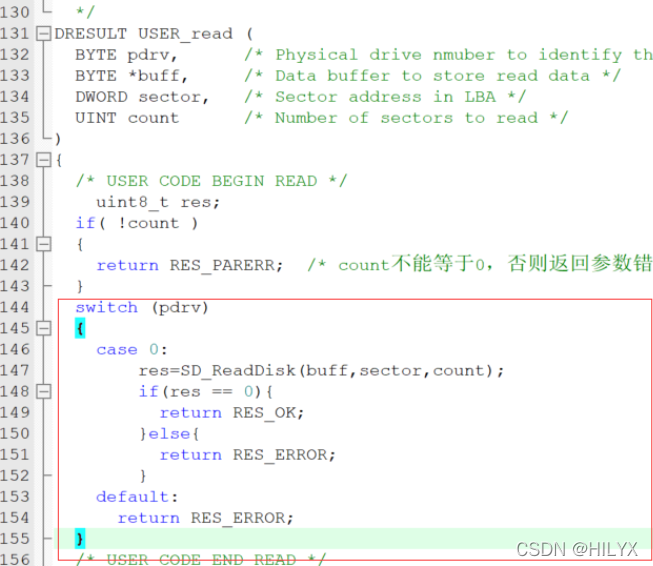 return RES_PARERR; /* count不能等于0,否则返回参数错误 */
